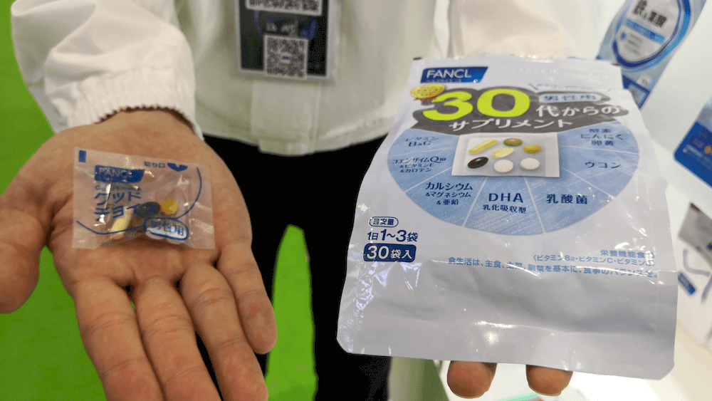 记者注意到,芳珂的展台上放置了多款在日本旺销了多年的“定制版保健品”,这些保健品大多是膳食补充剂,按照性别、年龄和体质等条件,细分为不同的款式,每种款式均为一个月的用量。打开包装,30个独立的小包装里装着不同种类的胶囊或颗粒,方便消费者携带和食用。